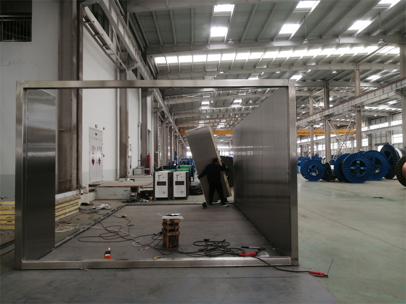 今天为大家介绍一台用于电缆厂蒸制电缆用的大型蒸汽房! 这种组装式的大型蒸汽房可以根据您电缆场的尺寸来进行定做,可以满足不同电缆场的需求,其实,只有硅烷交联电缆才需要蒸煮,目的是促进绝缘材料分子之间交联,使线性结构变成 网状结构。