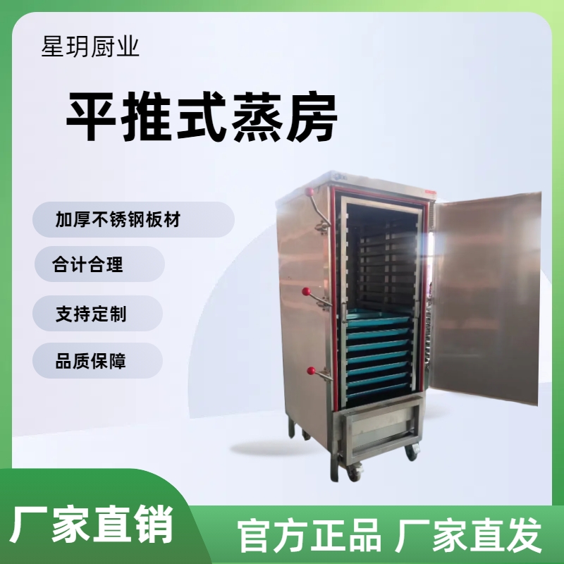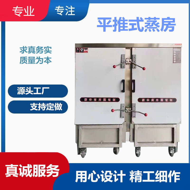 推车平推式蒸箱 平推式蒸房 推车用米饭蒸箱 双门 不锈钢