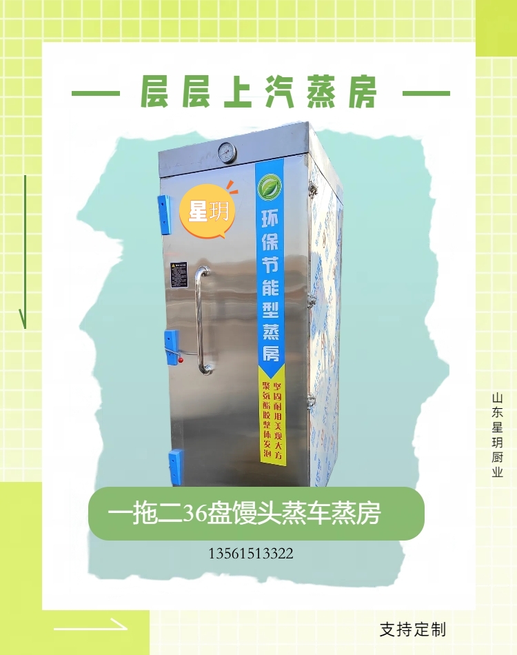 可移动式层层上汽蒸房层层上汽单门36盘馒头蒸房 一拖二36盘馒头蒸车上汽蒸房
