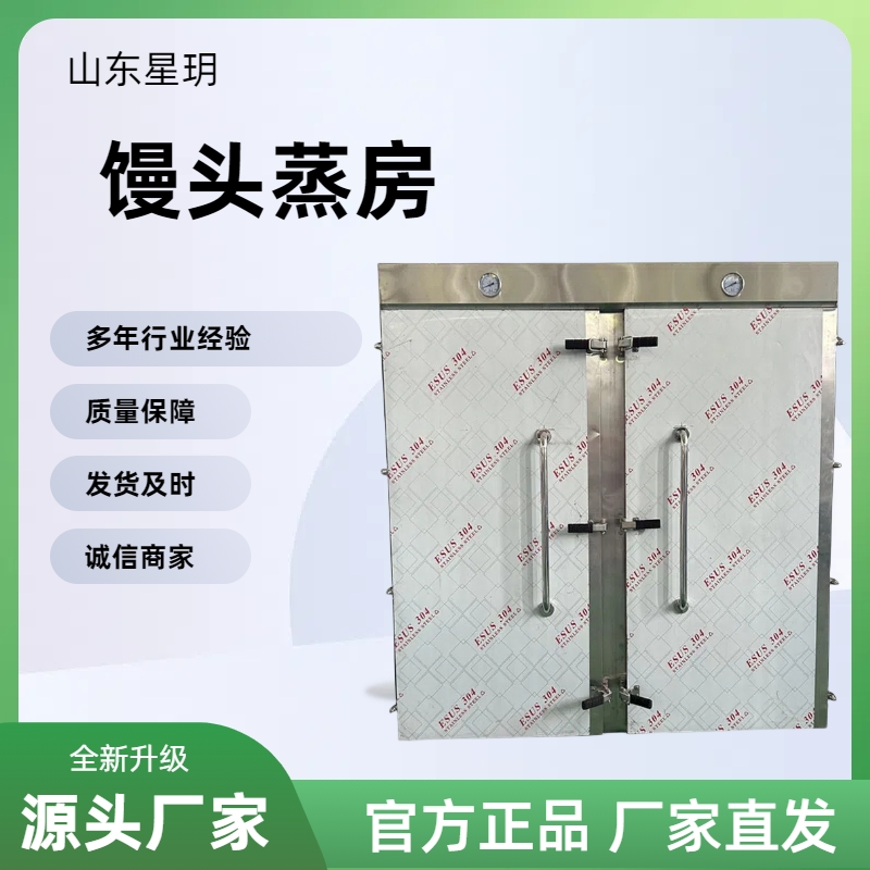 厂家自产自销 可根据客户要求制作异型产品,标配板材:201不锈钢0.6-1mm厚。质保一年。 大型馒头蒸房特点: 本产品吸收国内外同类产品之优点,精心设计,通过用户的实用鉴定,具有造型美观实用。不同的用户需要,尺寸可以根据用户要求货架子车尺寸来定做,内胆外胆均采用304不锈钢制作,保证不生锈,板材实厚1mm以上,结实耐用。